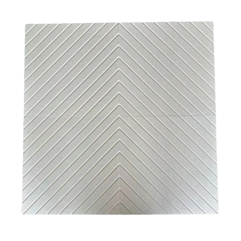 4. Vastupidav ja esteetiliselt meeldiv: Beige V-kanaliga PET Felt Acoustic Panel klassikaline beež värv on mitmekülgne ja stiilne, samas kui V-soonega tekstuur lisab igale seinale visuaalset huvi. PET-materjal on kulumiskindel, pleekimiskindel ja taaskasutatav, muutes selle nii keskkonnasõbralikuks kui ka kauakestvaks.