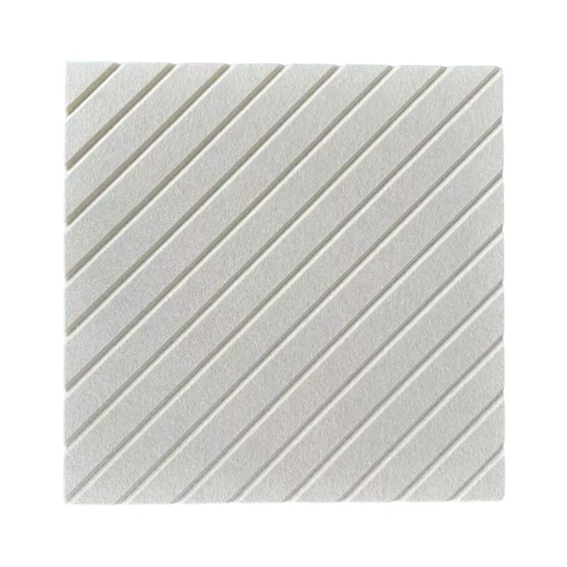Meie kvaliteetsete beežide V-lõigatud PET-vildist akustiliste paneelide alusmaterjalina on kasutatud 100% polüesterkiudu, mille pinnal on õrn V-lõikeline tekstuur, mis tundub katsudes pehme ja mõnus. Sisemus on täidetud peente mikropooridega, mis löövad heli tõhusalt kinni, hoides ära peegeldumise ja järelkaja. See mitte ainult ei lahenda kajamüra, vaid suurendab ka seina esteetikat selle mitmekülgse beeži värviga, tagades, et mürasummutus ei lähe vastuollu teie sisustusstiiliga – praktiline ja ilus!